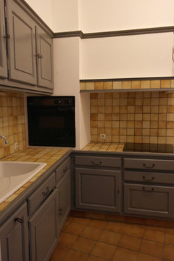 Salon de 27 m² sur parquet avec cheminée - cuisine indépendante